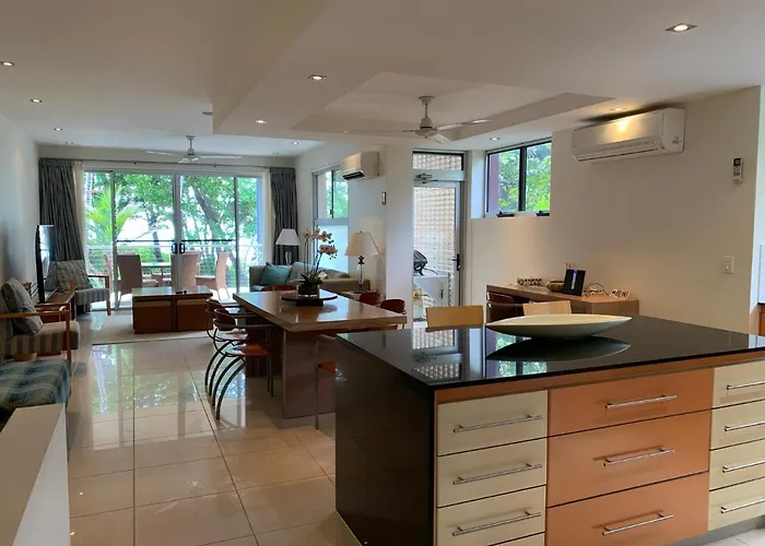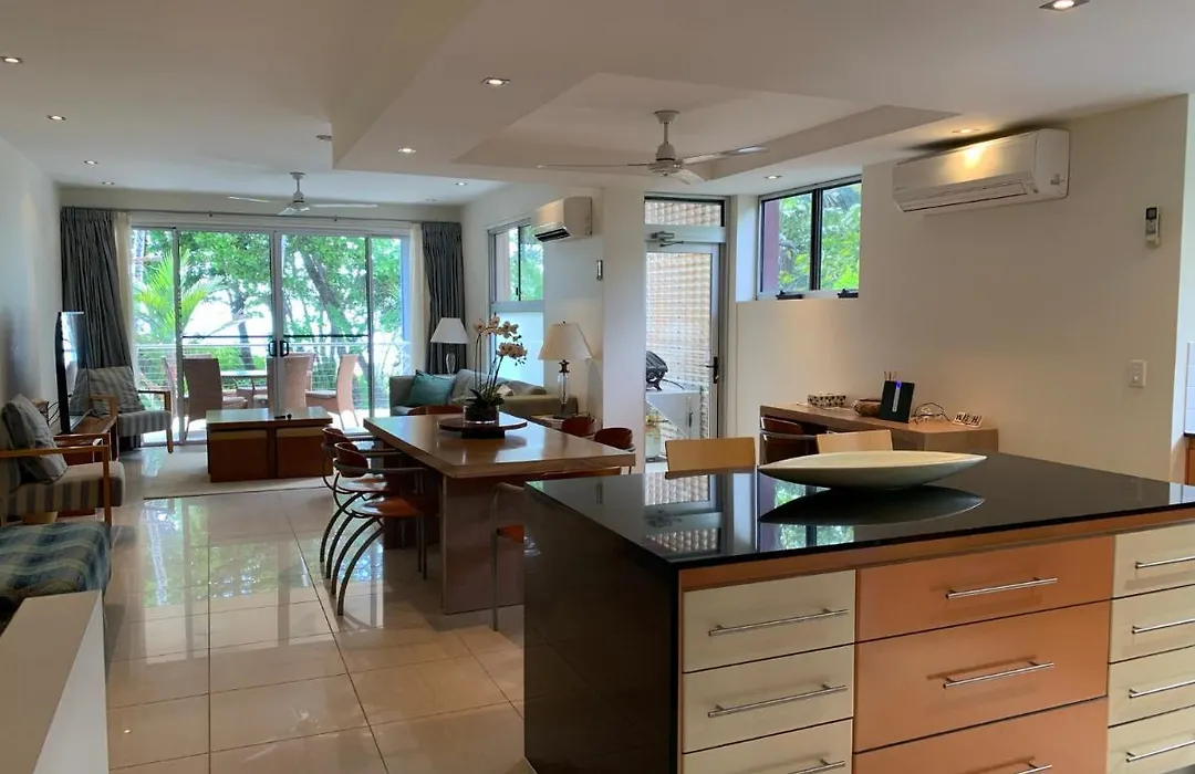 ベッドルーム1室のBeach House Apartment 1 ミッション・ビーチはテラスがあり、Stinger Enclosureから徒歩で5分の場所に位置しています。 Helen Wiltshire Gallery数歩の距離に位置する海辺の200m²のアパートで、顧客はプールを利用できます。